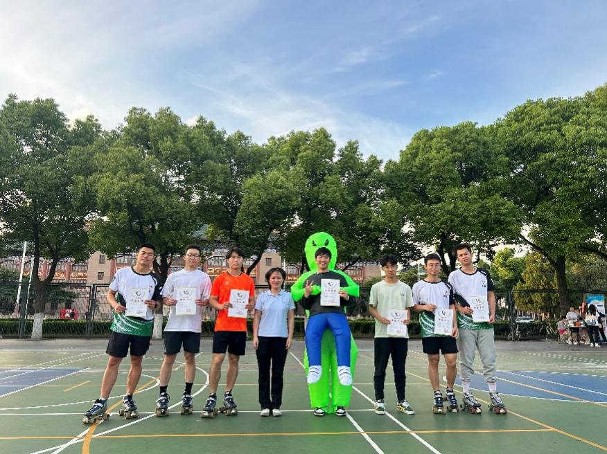 活动的首个环节,举行了全国轮滑锦标赛颁奖仪式。304am永利集团副书记、副经理王珊珊老师和轮滑社团指导老师姜嵘嵘老师分别作为嘉宾,为在2023年丽水进行的全国双排轮滑球锦标赛获奖选手进行颁奖。秉着“身心一统,兼蓄竞攀”的校训成就自我,成就彼此,当然少不了合影留念,记录下美好瞬间。