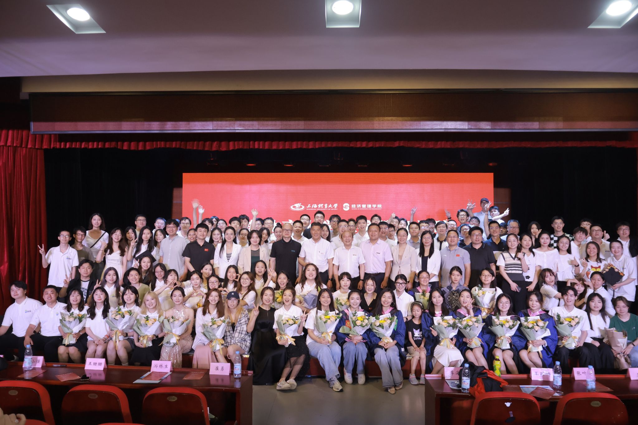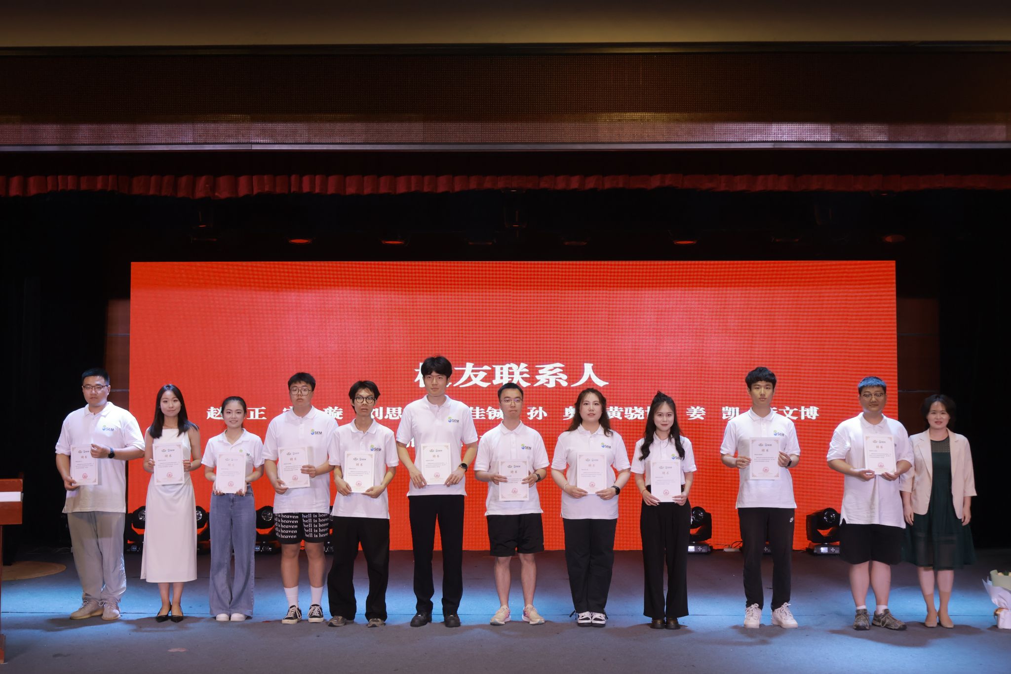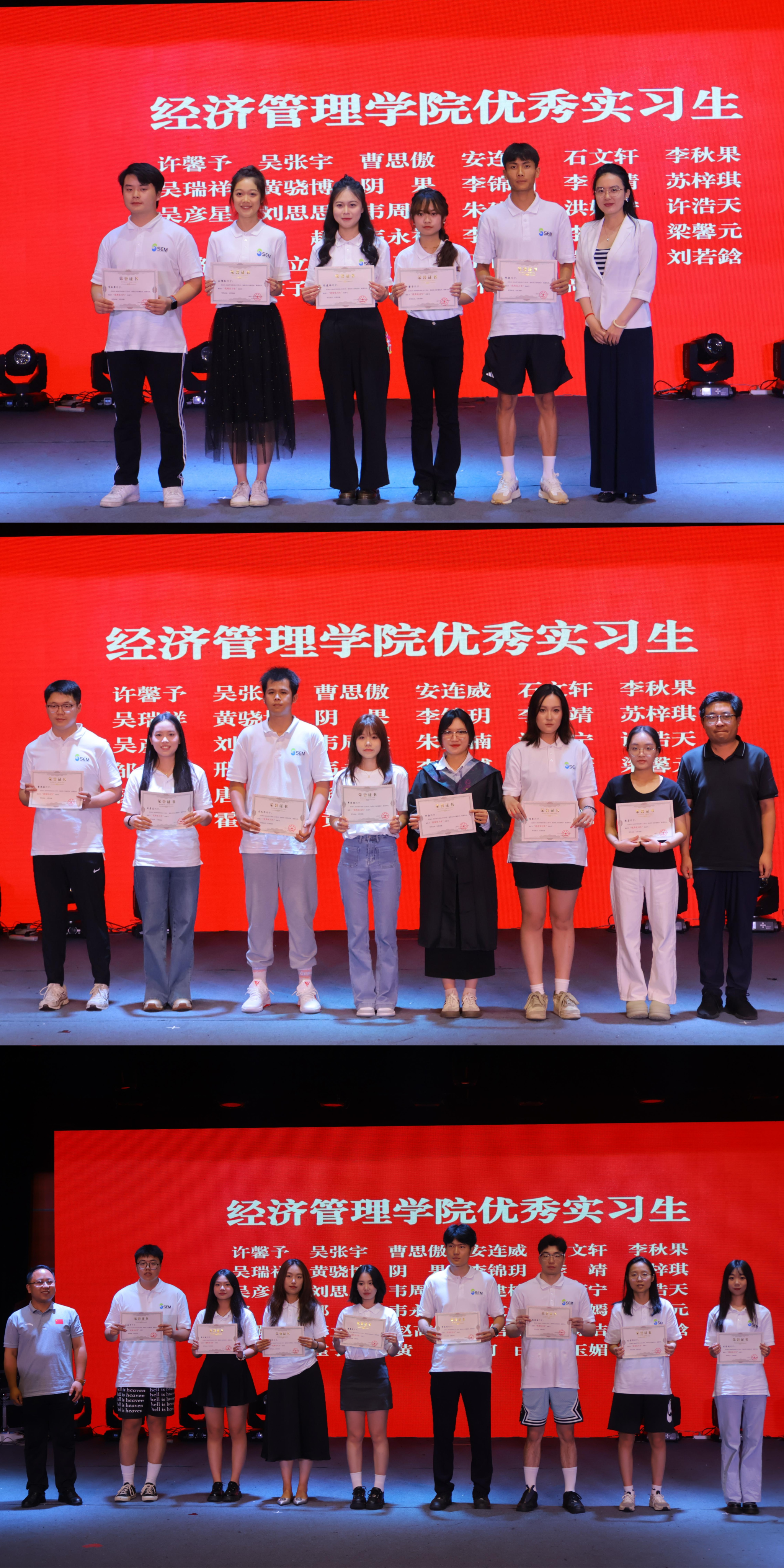 系主任齐超、经济团队负责人李键、体育旅游团队负责人林章林为优秀实习生代表颁发荣誉证书。