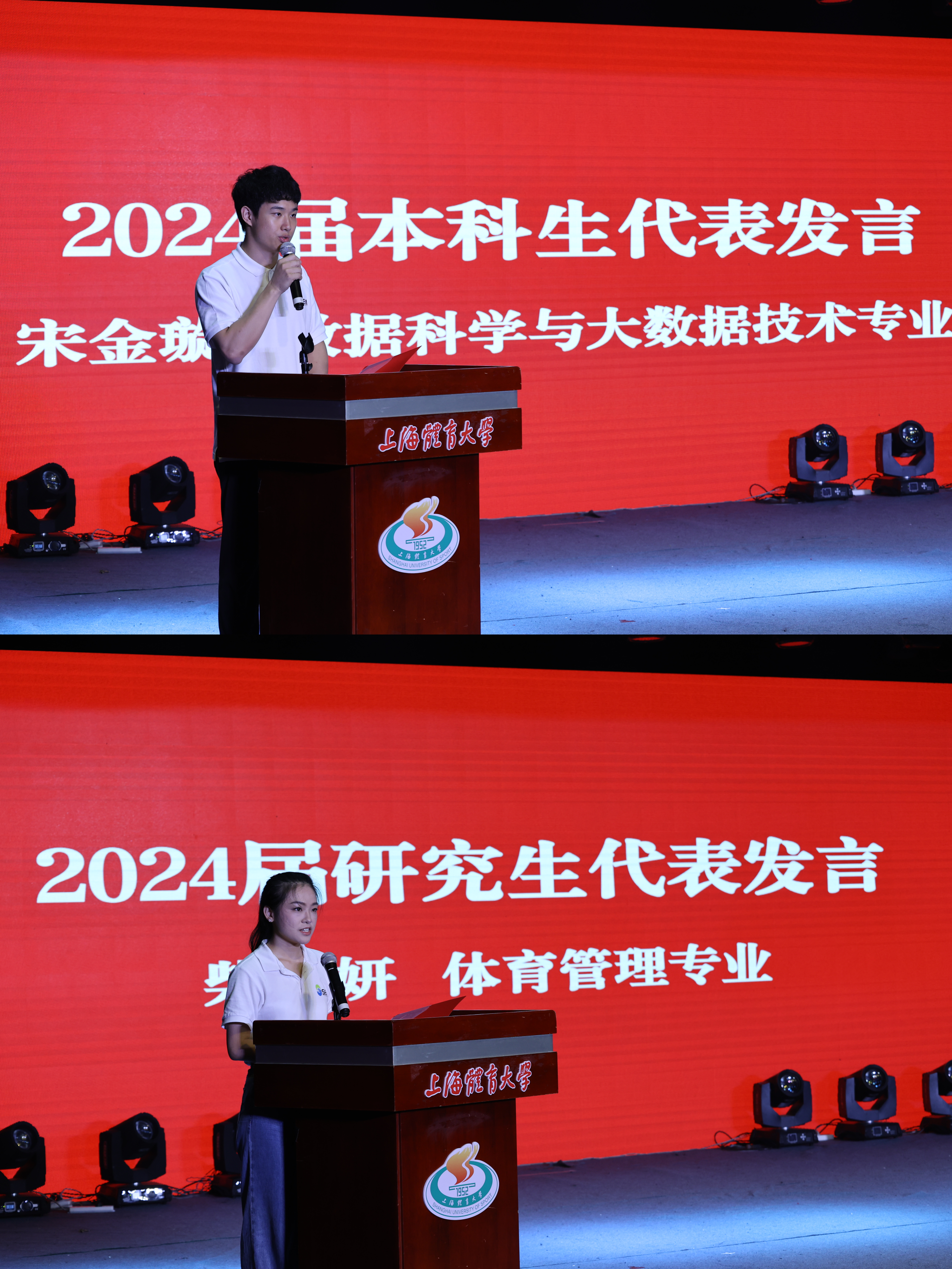 2024届本科生代表数据科学与大数据专业宋金璇和2024届研究生代表体育管理专业柴梦妍分享了他们在大学期间的成长经历与心路历程,表达了对母校的深深眷恋与感激之情。