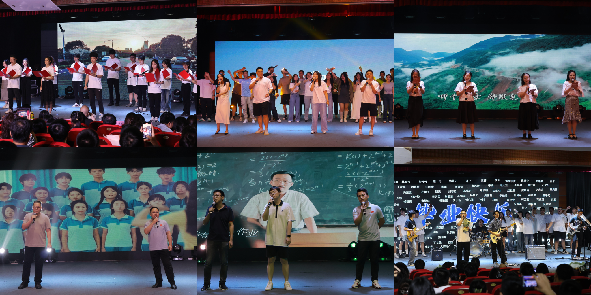 毕业典礼上,师生用精彩的文艺表演诠释离别的深情和期待,展望未来更好的相遇。本科生们朗诵了《奋斗者正青春》,用激昂的诗句表达了对未来的无限憧憬与坚定信念。研究生们合唱了《干杯》,用歌声表达了对老员工活的深深眷恋与不舍。教师团队带来的歌曲串烧《不说再见》将现场气氛推向了高潮,师生之间的深厚情谊在歌声中得到了完美诠释。最后,毕业典礼在乐队演奏的《光辉岁月》中圆满落幕。