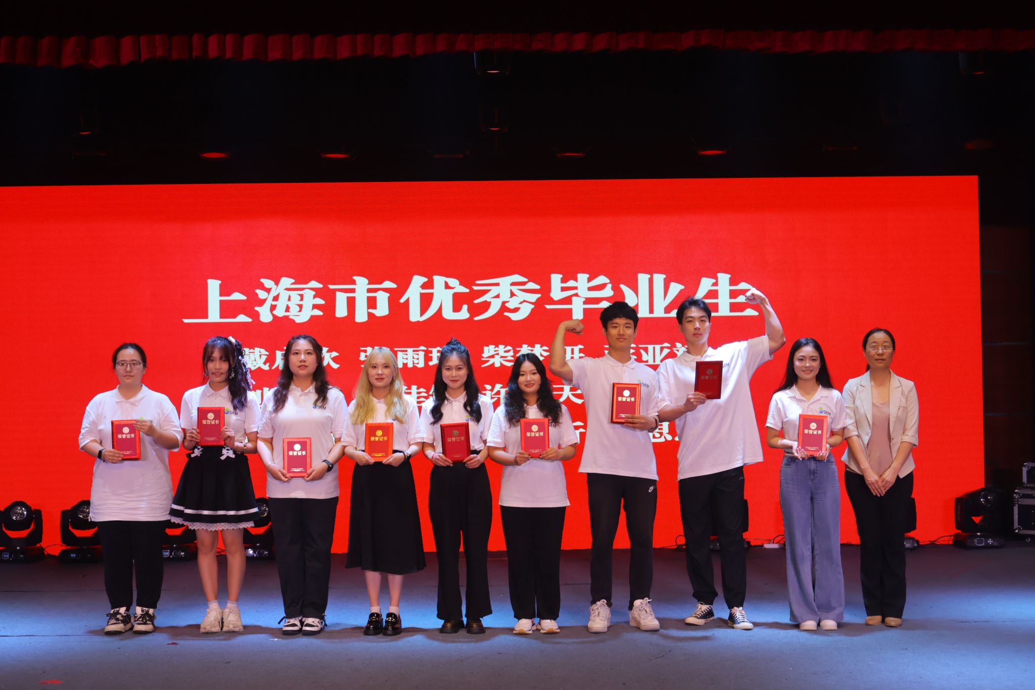 学工部、研工部、武装部部长王丽娜为上海市优秀毕业生代表颁发了荣誉证书。