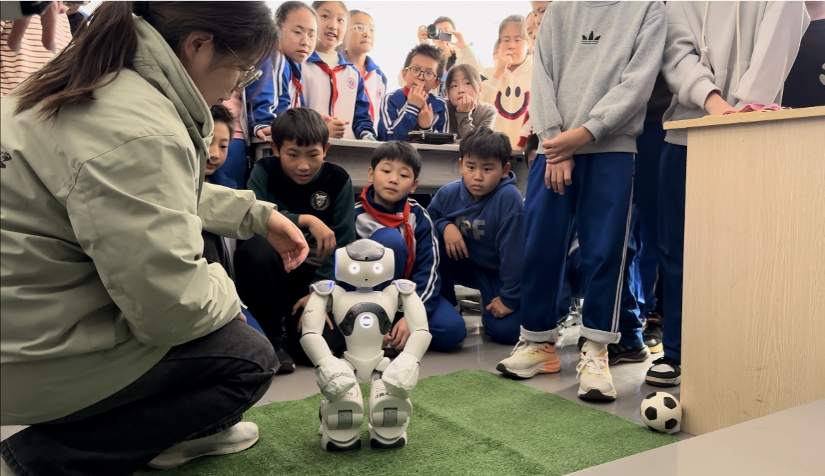随着音乐的节拍,机器人灵活地舞动,机器人舞蹈表演更是吸引了所有人的目光。在机器人踢球互动环节,同学们积极地参与其中。机器人精准的传球让同学们大开眼界,体验了与机器人合作的乐趣。同学们惊叹于机器人的协调性和技术的进步,这不仅让他们对机器人技术有了更深的认识,也激发了他们对科技的兴趣。