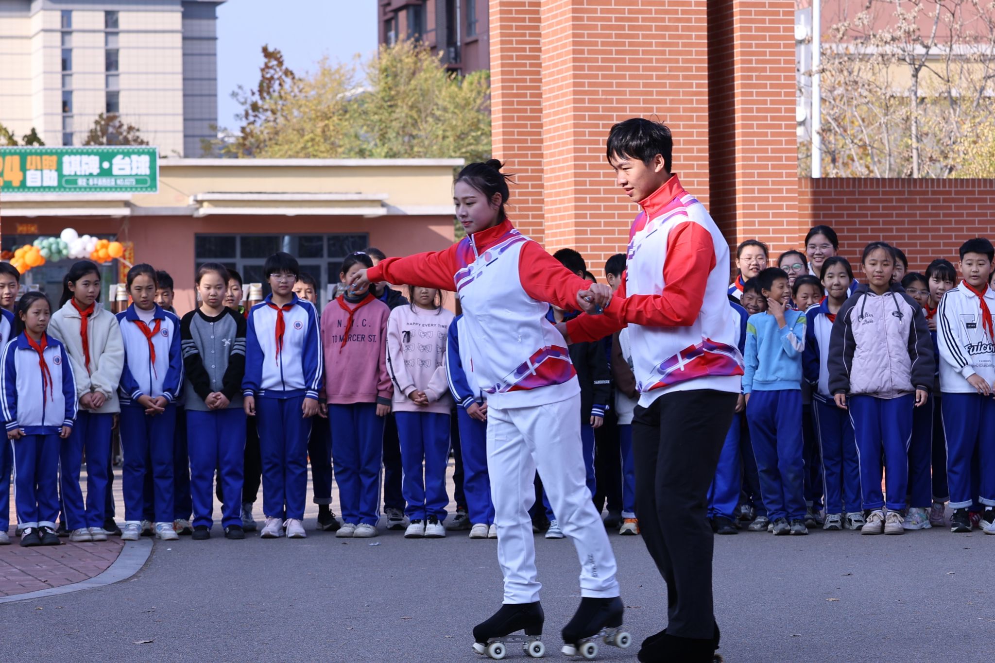 在轮滑展示和教学课程结束后,阜平小学轮滑社团的同学们迫不及待地与团队成员合影留念,他们的眼中闪烁着对体育运动的无限热爱。有同学兴奋地表示,大哥哥、大姐姐们实在是太厉害了,他们希望,自己将来也能成为全国乃至世界的冠军!
