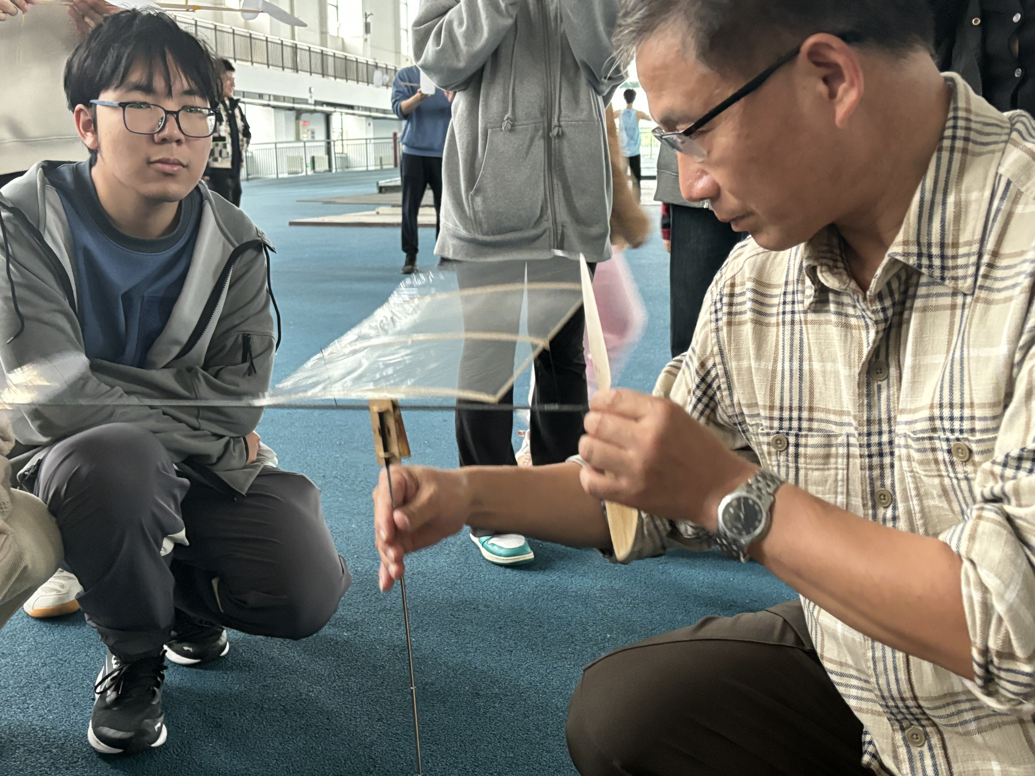 实践环节更是将活动推向高潮,参与者们移步至室内田径馆,现场观赏了第15届全运会的正式比赛项目——无人机足球和室内橡筋动力飞机的演示。无人机足球比赛展现了高科技与体育竞技的完美结合,而室内橡筋动力飞机则以其独特的飞行方式和趣味性吸引了众多师生的目光。演示过程中,专家们还设置了学员体验互动环节,让大家有机会亲自上手操作航模,亲身感受飞行的乐趣。