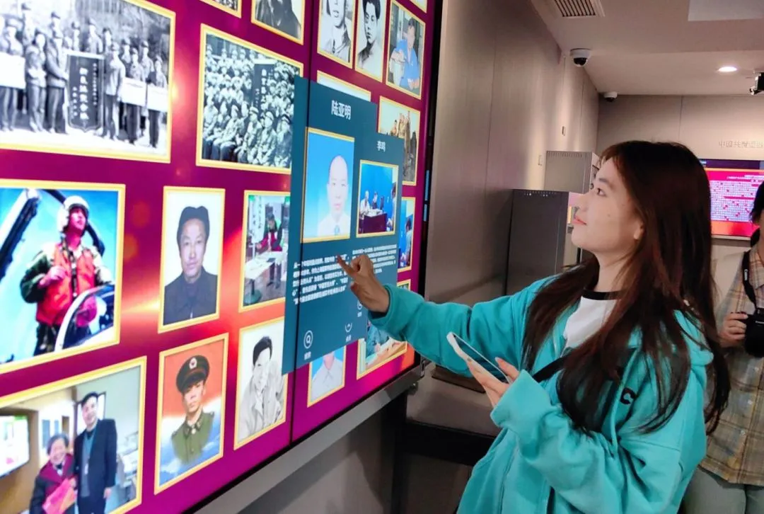 再往里走,来到互动体验厅,这里重点展示了五四运动以来的33位青年英模和英模集体的感人事迹。照片、实物、艺术品、模拟场景等传统布展手段与多媒体技术支持下的互动项目相结合,让我们在感受历史的同时,与英模进行了一场交流。