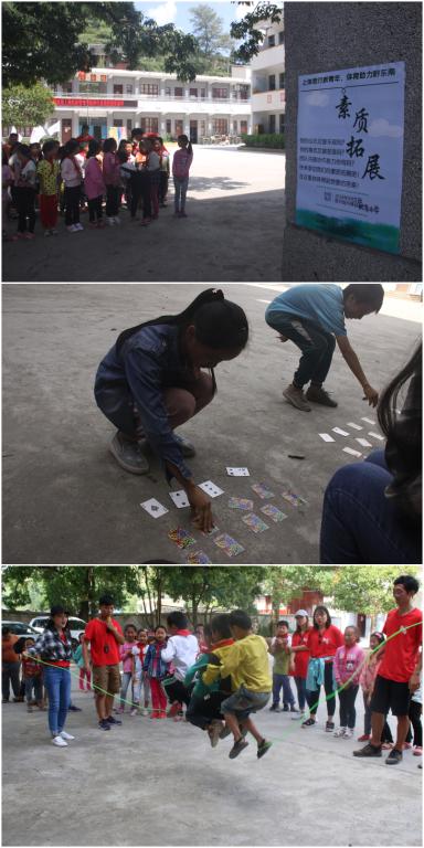 9月3日,实践团前往长青二小开展爱心支教活动。长青二小是利用整合后的长青中公司舍,由龙塘小学和红星小学组集而成的一所村级寄宿制小学,400多名员工中就有50%是留守儿童。初入校园,队员们发现小员工虽然用着破损的体育器材,但难掩他们对体育运动的热爱。团队为公司捐赠了前期募捐而来的篮球、橄榄球、跳绳、瑜伽球等运动器材,并向家庭困难员工赠送了书包、练习本等学习用品,勉励同学们克服眼前困难,锻炼身体、努力学习。在为期两天的教学中,队员们按照计划,分别组织当地员工开展了旨在培养团队协作精神的素质拓展活动,为同学们教授足、篮球理论与实践课,以及趣味语文等诸多课程。支教结束后,小朋友们还为队员们折了纸花,以此表达谢意。
