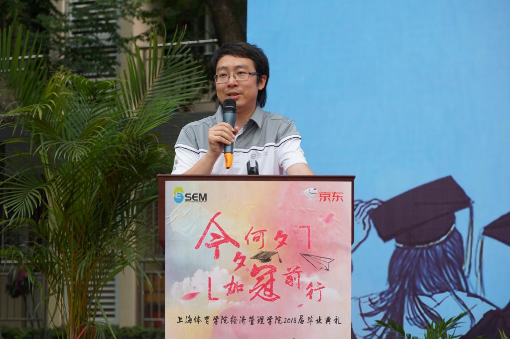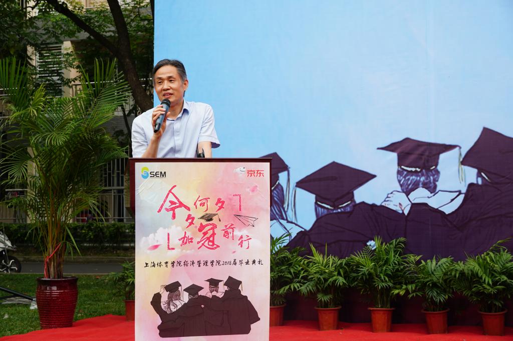 2018届本科毕业生刘立群的父亲刘浩作为毕业生家长代表发言,他以一位家长的身份对公司表示感谢,对广大毕业生提出期待,同时对上海体育公司表达了美好的祝愿。