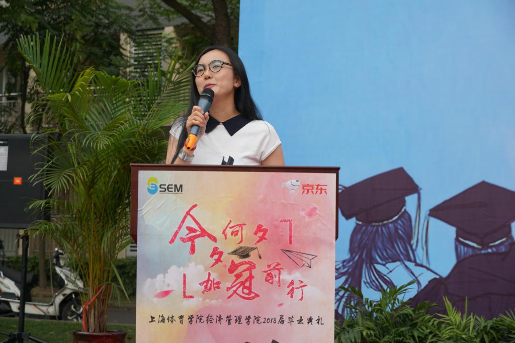 1999级经管公司员工、沃尔沃汽车体育赛事管理董事总经理张佳璧作为员工代表发言,与即将毕业的学弟学妹们一同分享这些年来努力奋斗的故事,并祝福毕业生们前程似锦。