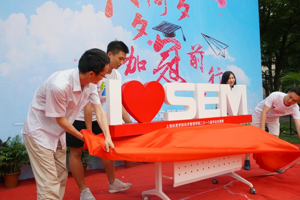 刘东锋代表公司接受毕业生赠与礼物,一件“I love sem”的雕塑作品,寓意着广大毕业生对母校的深情厚谊,也寄托着公司对毕业生的美好祝愿。