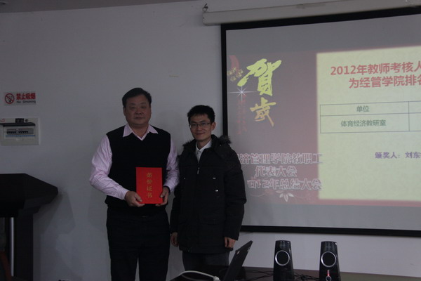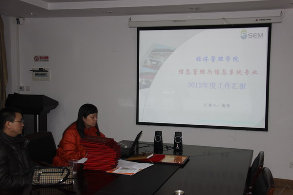 接着,管理科学教研室主任陈锡尧老师、体育经济教研室主任刘清早老师、信息管理教研室主任陶倩老师、计算机与统计教研室主任毛建华老师分别代表本部门作了2012年教研室工作总结报告,各位主任分别从教学、科研、专业建设、人才培养等方面做了回顾,尤其是对存在的问题进行了很好地剖析,由此引发了在坐老师的共鸣。