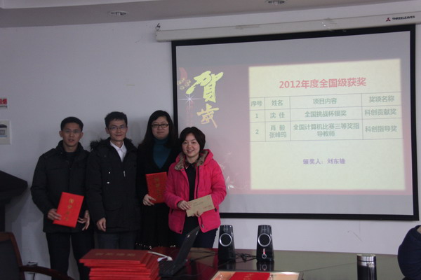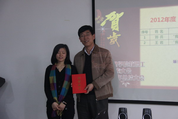 会上还对2012年度教职工单项奖获得者进行了表彰和奖励。