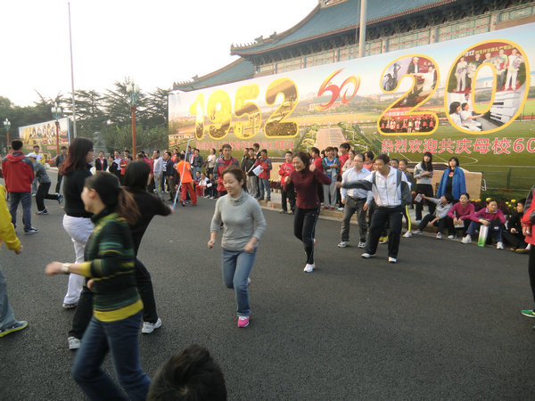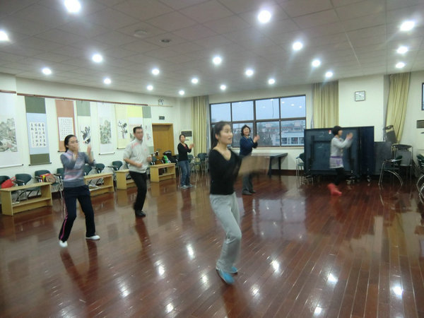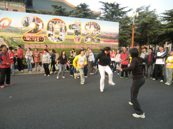 为了锻炼教职工的身体素质,经管公司工会聘请了2名健身操教练,每周三下午4:15-5:15在校工会健身房教大家健身操。