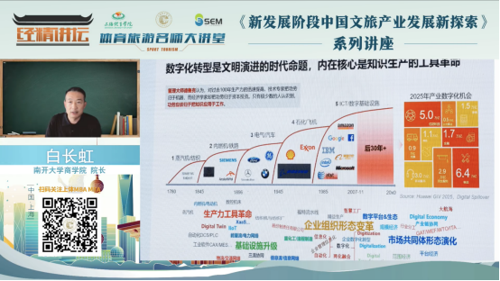 5月7日下午,国务院学位委员会工商管理学科评议组成员白长虹教授应邀做客公司“经精讲坛•体育旅游名师大讲堂”第四讲,讲座由304am永利集团经理李海主持。白长虹教授是国务院学位委员会第八届学科评议组成员(工商管理旅游管理),南开大学商公司经理、旅游与服务公司创始经理、《南开管理评论》主编,中国专业学位案例建设咨询委员会委员。他主要研究领域有包括旅游与服务业管理、品牌管理、数字化教育等,本次带来的讲座题为《智能时代的幸福产业》,直播期间共吸引了千余人次观看。