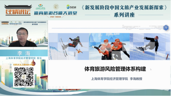 本期讲座主题为《体育旅游风险管理体系构建》,由经管公司副教授林章林主持,经管公司经理李海教授主讲。李海经理详细解读了体育旅游风险管理的思路和理念。近年来体育与旅游融合发展,在国内呈现出蒸蒸日上的发展态势。各类新兴体育休闲娱乐项目的蓬勃发展,也存在许多安全风险。构建有效的体育旅游风险管理体系成为当务之急。同时,还需要加强行业管理和服务、健全体育旅游安全预警机制和应急体系、开展行业安全培训和应急演练等工作。