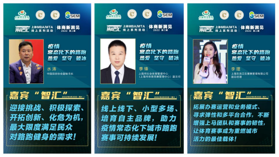 本次活动主题为“疫情常态化的路跑:热爱·坚守·破冰”。活动上7位嘉宾分别从路跑赛事管理者、举办地城市、路跑赛事组织方、媒体、服务商及参与者视角,就我国未来路跑赛事的发展为主题分享了自己独到观点与见解。