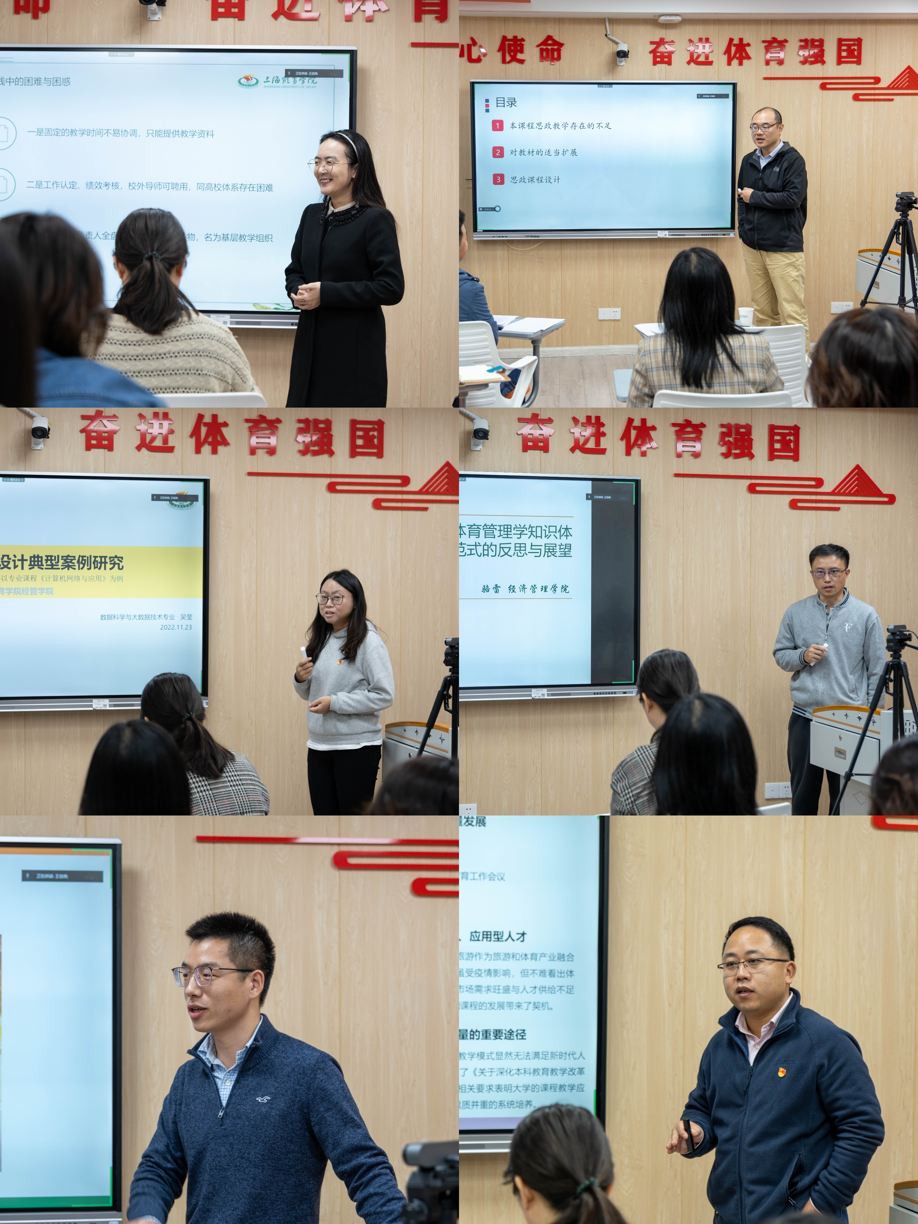 感谢两位专家对我未来如何正确、清晰地挖掘体育经济管理专业课程中所蕴含地隐性思政元素,如何系统、有效地进行教学指南地研制提出了可行性建议。同时,也感谢每一位教师毫无保留的汇报交流,让我在他们的实践与反思中,进一步熟悉公司产品研究的先进理念和科学方法,也更深刻地感受到“教无定法,贵在得法”的价值。