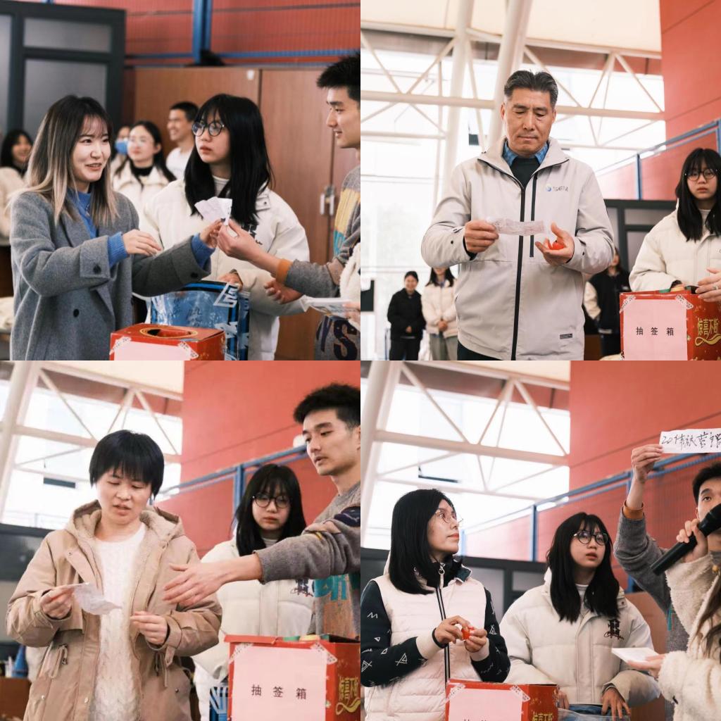 到场嘉宾为“路人王”经管杯篮球赛、羽毛球赛、排球赛、足球赛进行了分组抽签。