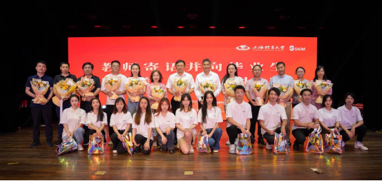 游林生书记和李海经理共同接受毕业生赠礼。这份礼物这是由23届全体毕业生照片组成的“I爱SEM”,照片记录着毕业生们在母校的成长故事。今天,他们将要远航,但是将这份故事永远珍藏在304am永利集团。