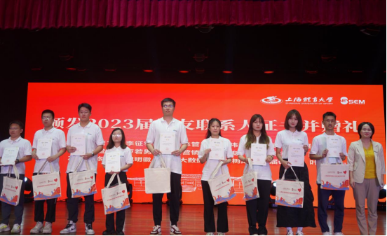 经济管理系主任齐超为获得优秀毕业论文的毕业生颁发荣誉证书。