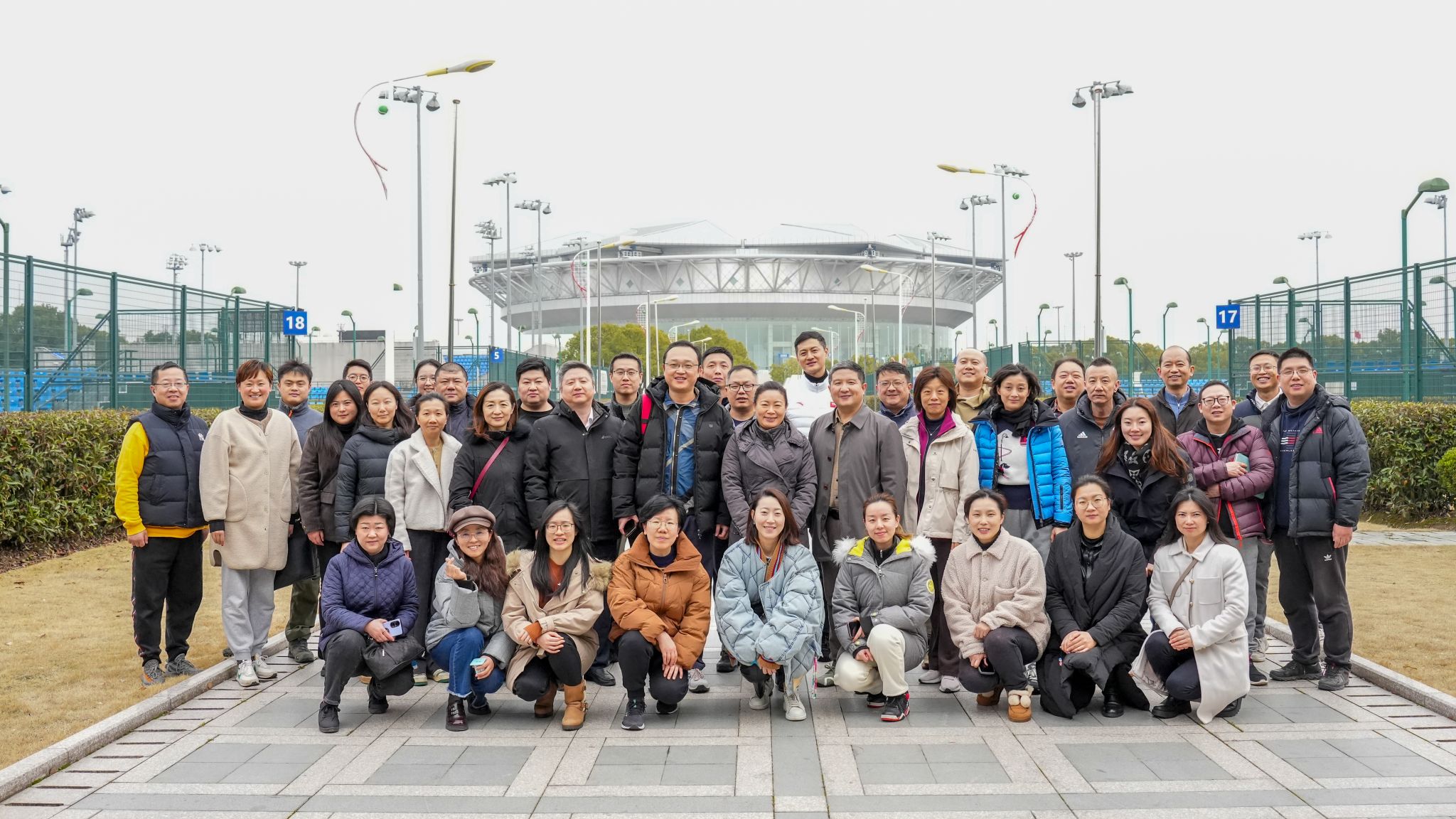 培训讲座间隙,宋昱教授向培训学员详细介绍了公司学科和学位点建设情况,重点推介了公司MBA/MTA专硕项目和体育经理人培训项目,并与参培人员一同参观了旗忠森林体育城网球中心并合影留念。