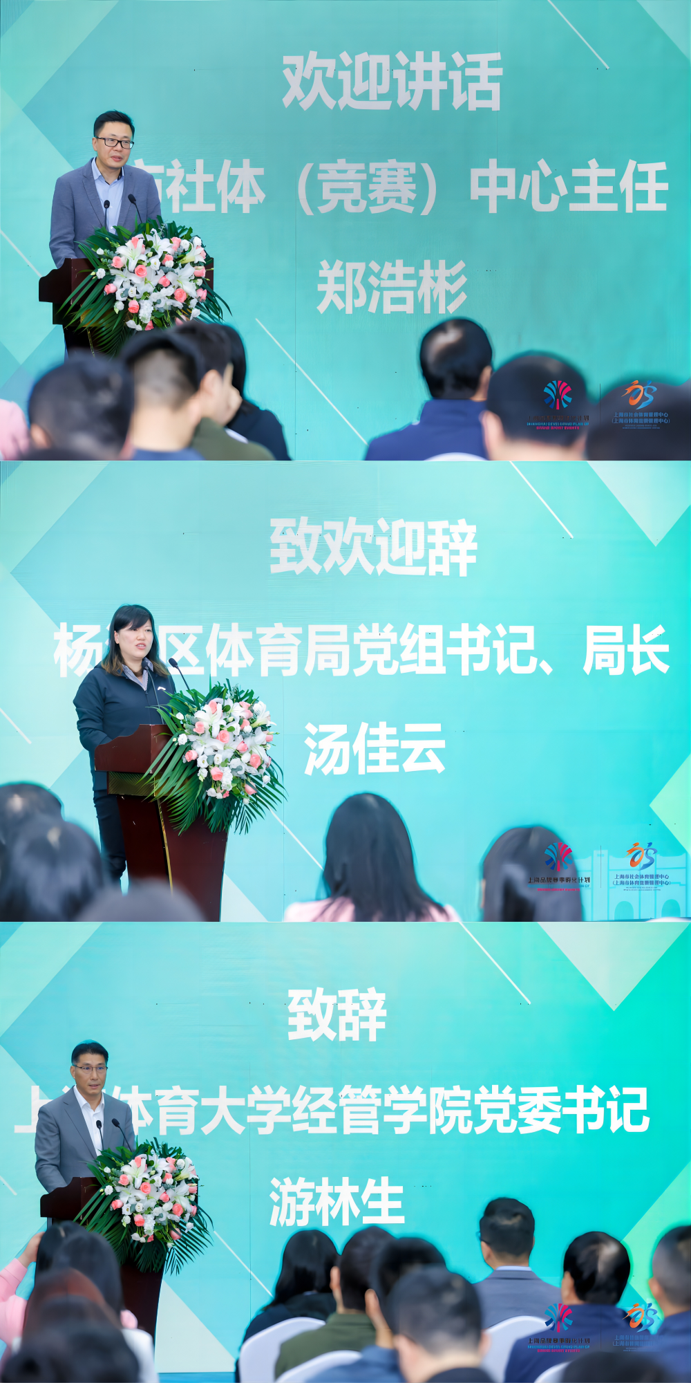 市社体(竞赛)中心主任郑浩彬,杨浦区体育局党组书记、局长汤佳云,304am永利集团公司党委书记游林生在沙龙活动上发表讲话。