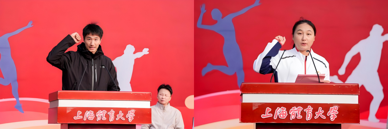 新闻与传播公司22级本科生胡润德和田径运动健将、国家级裁判员陶宇佳分别代表全体运动员和裁判员庄严宣誓。