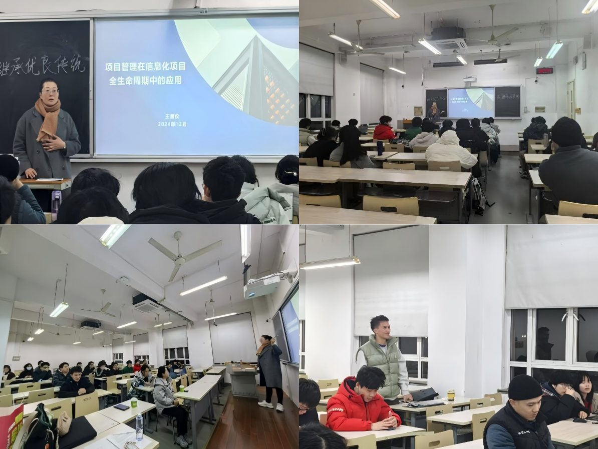 2024年12月18日晚,上体经管邀请了国家一级注册建造师,上海市政府采购专家王嘉仪女士,开展了题为“项目管理在信息化项目全生命周期中的应用”的讲座交流活动。