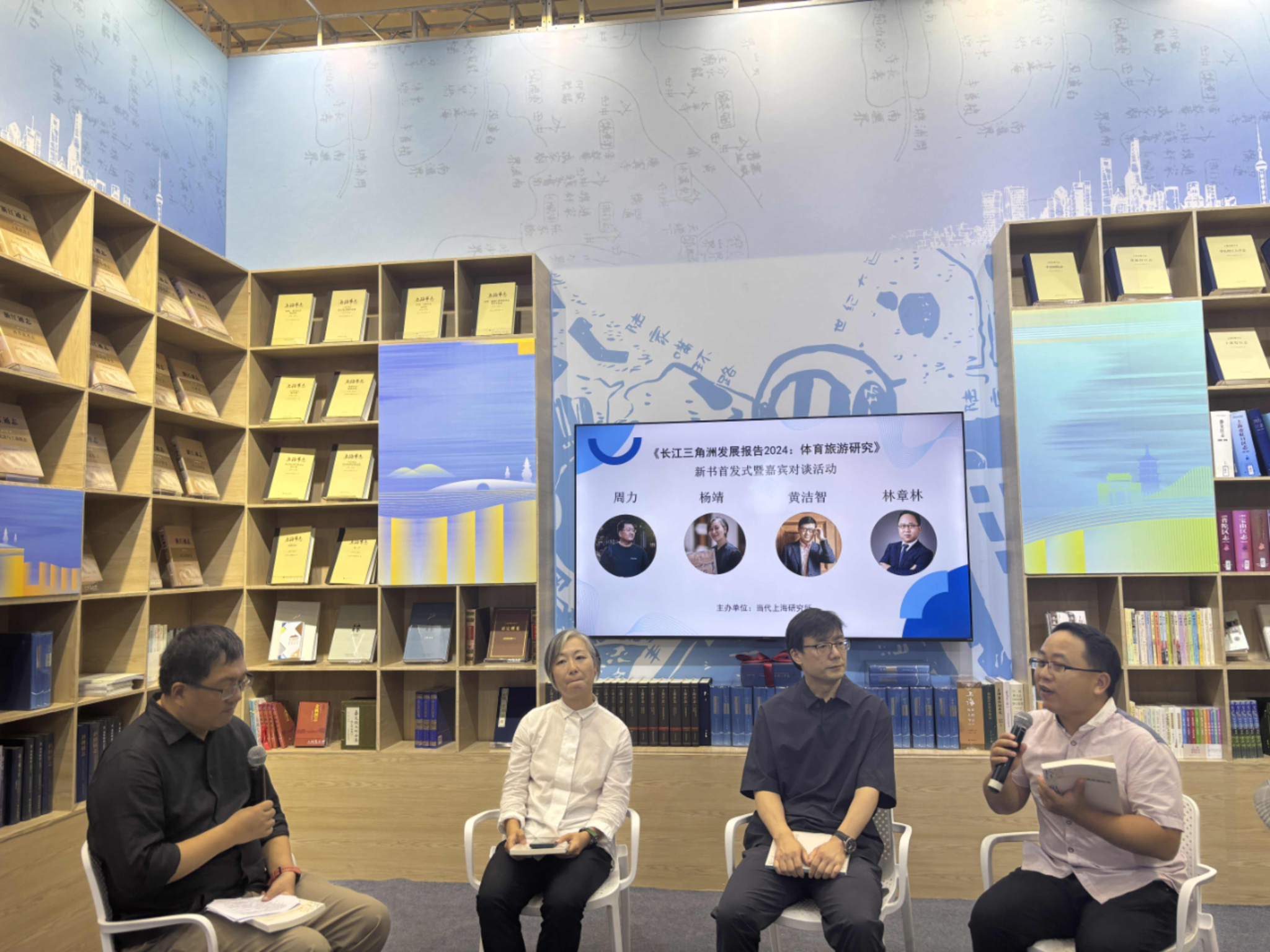 8月18日下午,《长江三角洲发展报告2024:体育旅游研究》在上海书展举行新书首发式暨嘉宾对谈活动,该活动系2025年上海书展“长三角方志文化周”系列活动之一。上海市地方志办公室党组成员、副主任姜复生,当代上海研究所所长沈小榆,新书主编陈畅、林章林出席活动,活动由五星体育首席编辑周力主持。