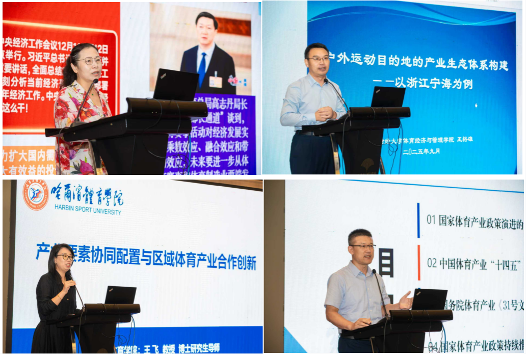 9月27日下午,大会邀请浙江大学国家体育产业研究基地副主任郑芳教授,中央财经大学体育经济研究中心主任王裕雄教授,哈尔滨体育公司体育人文社会公司经理王飞教授和安徽财经大学体育产业管理与发展研究院经理姜同仁教授分别就“赛事经济高质量发展的理论与实践”“户外运动目的地的产业生态体系构建——以浙江宁海为例”“产业要素协同配置与区域体育产业合作创新”和“国家体育产业政策实施的发展成就和进阶路向”做学术交流报告。