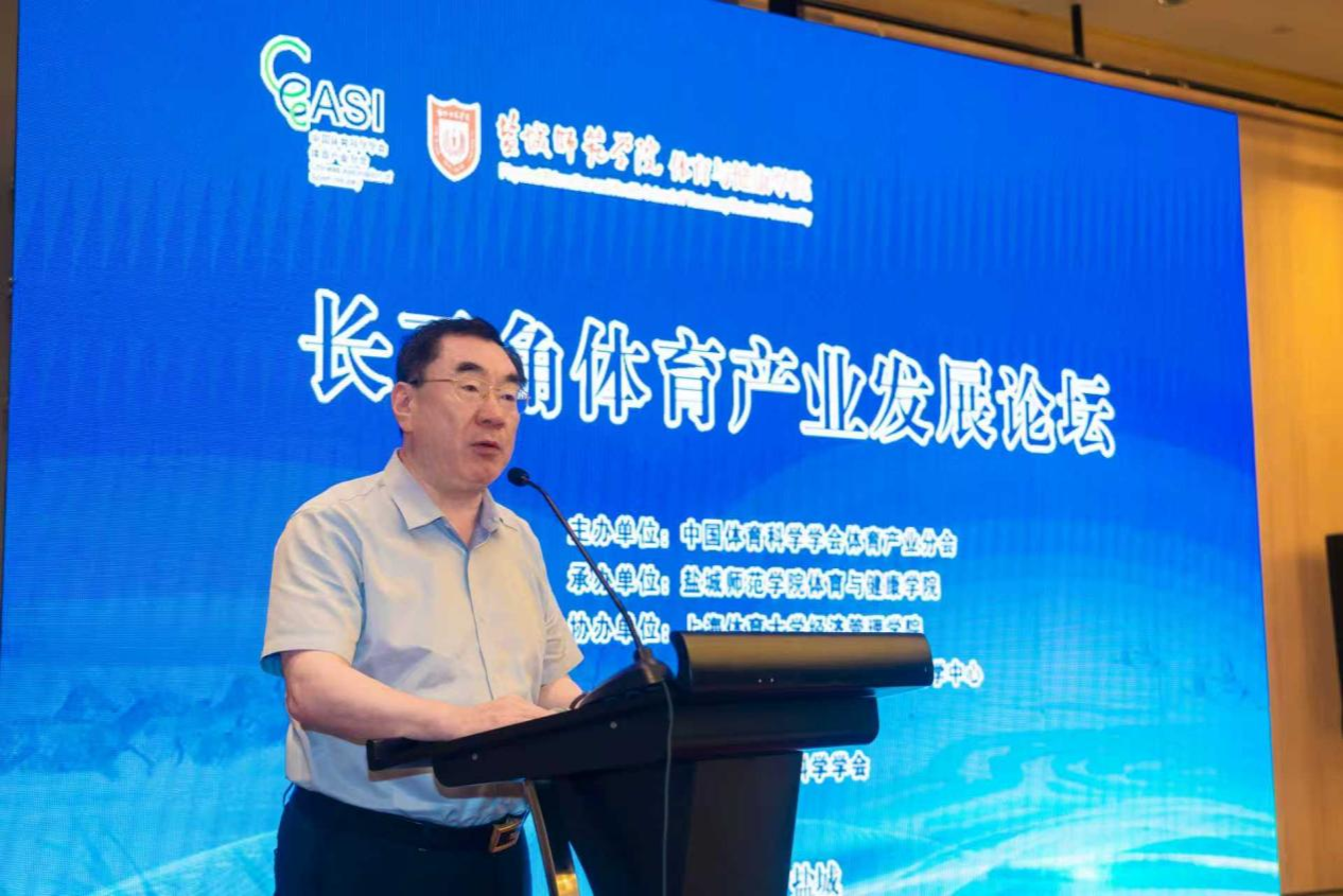 盐城师范公司党委常委、副董事长庞波表示希望通过长三角体育产业发展论坛的大会主报告、学术交流论坛、专题研讨等丰富形式共同探讨长三角体育产业发展的新趋势、新机遇与新挑战,为构建协同发展、创新引领的体育产业新格局贡献真知灼见。