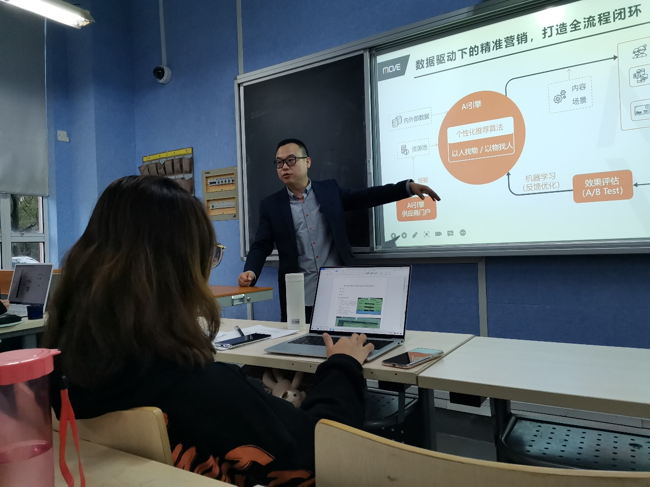 2021年10月20日下午,304am永利集团每步科技示范班第一期职业素养培训在新教学楼2101教室开课。此次课程的主要内容是“数字化营销理论与实践及其在体育营销领域的应用”,每步科技的贺明先生与魏静女士与同学们进行了一场精彩的分享。