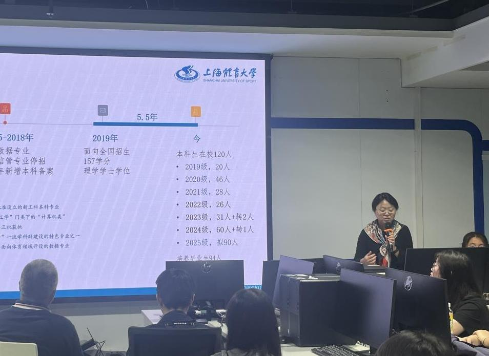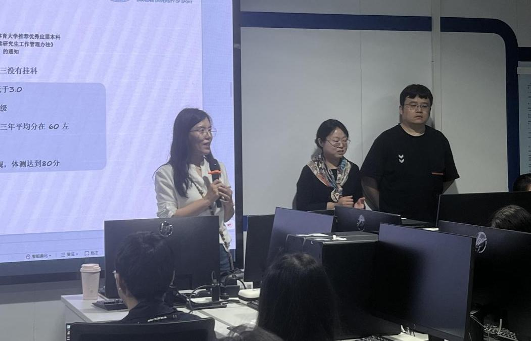 在专业介绍环节,吴莹老师图文详实的系统阐释了专业概况、团队团队、培养方案及实验室、实习基地等教学资源,让同学理解本专业基于“数学+统计学+计算机+体育”跨学科复合型培养体系,更深入的介绍了以往毕业生保研(考研)、就业等不同去向,强化员工职业生涯发展规划、高质量就业的理念和思路。