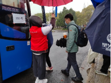 接驳车志愿服务工作持续时间长、要求细,每一位志愿者都以饱满的精神状态来接待需要在宿舍区与教学区来往的同学。从7:50准时到达岗位进行人员引导,到18:15确保每一位在教学区进行学习、运动的同学都已安全返回宿舍区,就算遇上狂风暴雨也毫无怨言,用自己的身躯撑起躲雨的帐篷、用自己的伞搭建上车通道,为的就是能让同学们得到最好的服务。