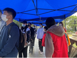 核酸志愿服务工作强度高、短时间内服务人数多,要求每一位志愿者从上岗开始就需要做好人员的引流,并做好提醒佩戴口罩的工作。虽然气温较高,但每位志愿者依旧以良好的精神面貌服务前来进行核酸的绿瓦学子。