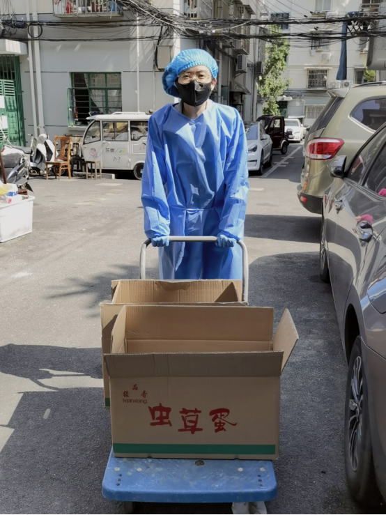 罗娜在仁德公寓派发物资、核酸现场扫码