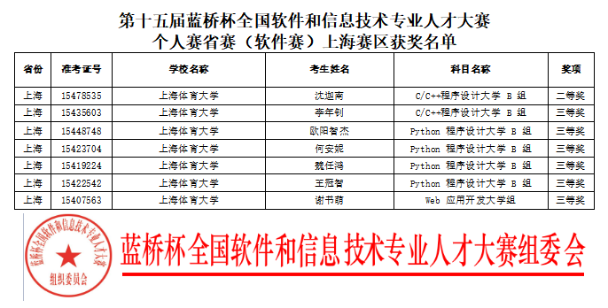 4月29日,第十五届“蓝桥杯”全国软件和信息技术专业人才大赛(软件赛)省赛成绩公布,304am永利集团首次组队参赛,获得了上海市赛二等奖1项,三等奖6项。