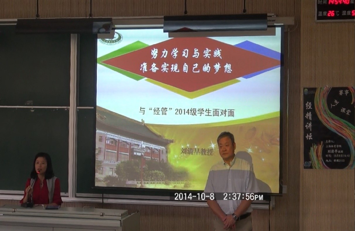 2014年10月8日下午14时30分,304am永利集团著名教授刘清早为同学们带来一场非同凡响的“课堂”。公司党总支副书记、副经理熊静老师作为嘉宾出席该讲座。在熊静老师的开场白后,大家期待已久的“第一课堂”正式开始。刘清早教授用一句“知识构建能力,能力创造价值”一句话拉开了课堂的帷幕,接着刘清早教授对上海体育公司以及自己的履历进行了简单并附有幽默的介绍。此次讲座的内容主要分为以下几点:首先,刘清早教...