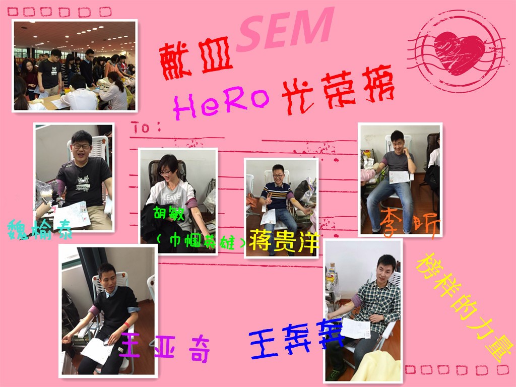 用热血为生命加油一滴血,一片心,一份爱。一点热血助他人,一颗爱心好精神。一份血,万份情,无偿献血最光荣。你问我为何血浓于水?因有爱在其中。血润生命,爱流人间。真情流淌,血脉相通。用热血为爱心接力!用热血为生命加油!向所有无偿献血的师生员工们致敬!2015年上体献血日经管研究生献血光荣榜献血人学号专业魏榆泰1420421004体育管理胡敏1420421009体育管理蒋贵洋1420423005体育赛...